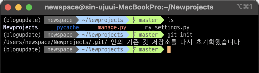 - 생성한 장고 프로젝트를 git으로 관리할 수 있도록 초기화 한다.