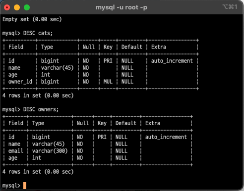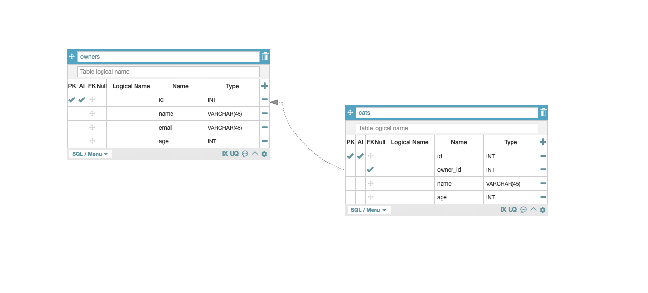 # 주인과 고양이라는 테이블을 만들었습니다.
