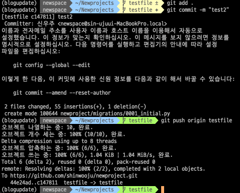 - 이미 branch에 연결되어 있기 때문에 branch는 생략하고 add, commit, push만 하시면됩니다