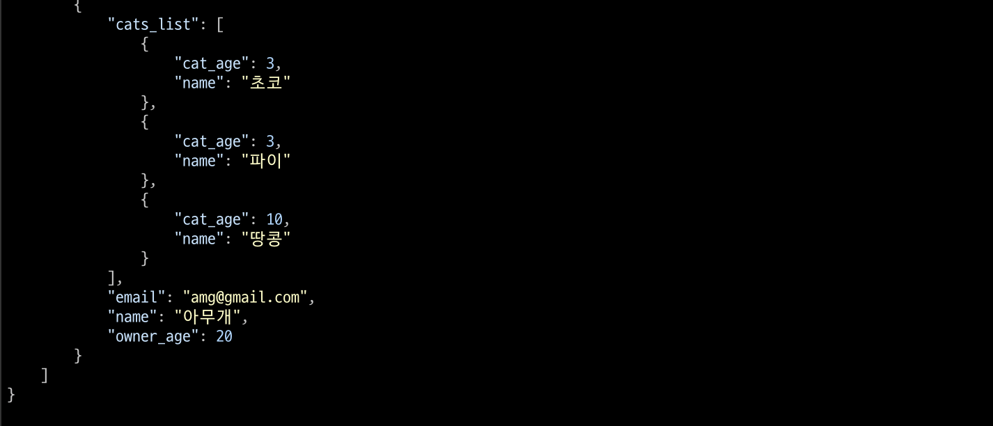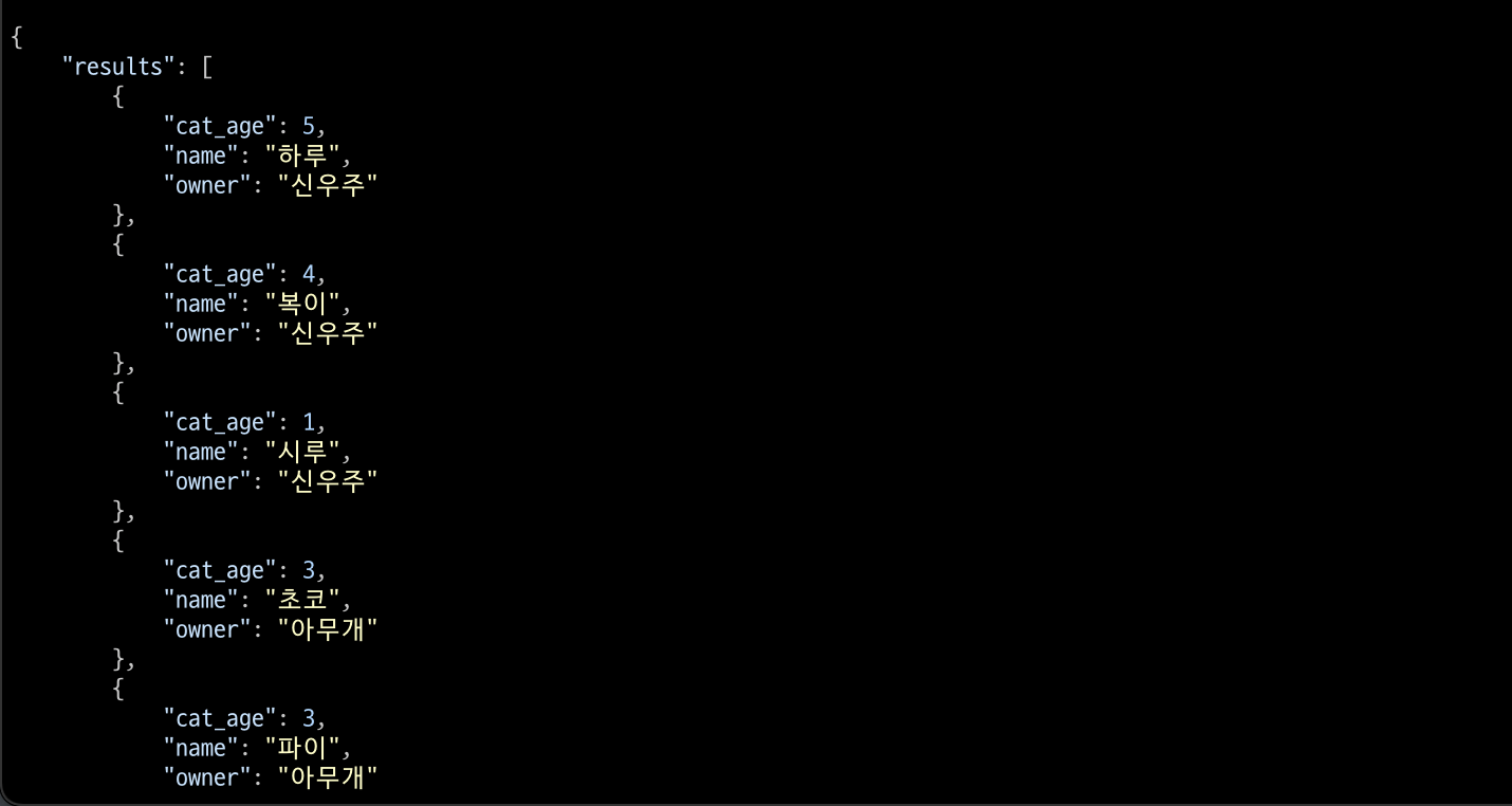 반대로, 고양이들에게는 주인들의 id가 foreignkey로 연결되어있기에 고양이들의 목록을 보면 주인들의 목록을 볼 수 있다.