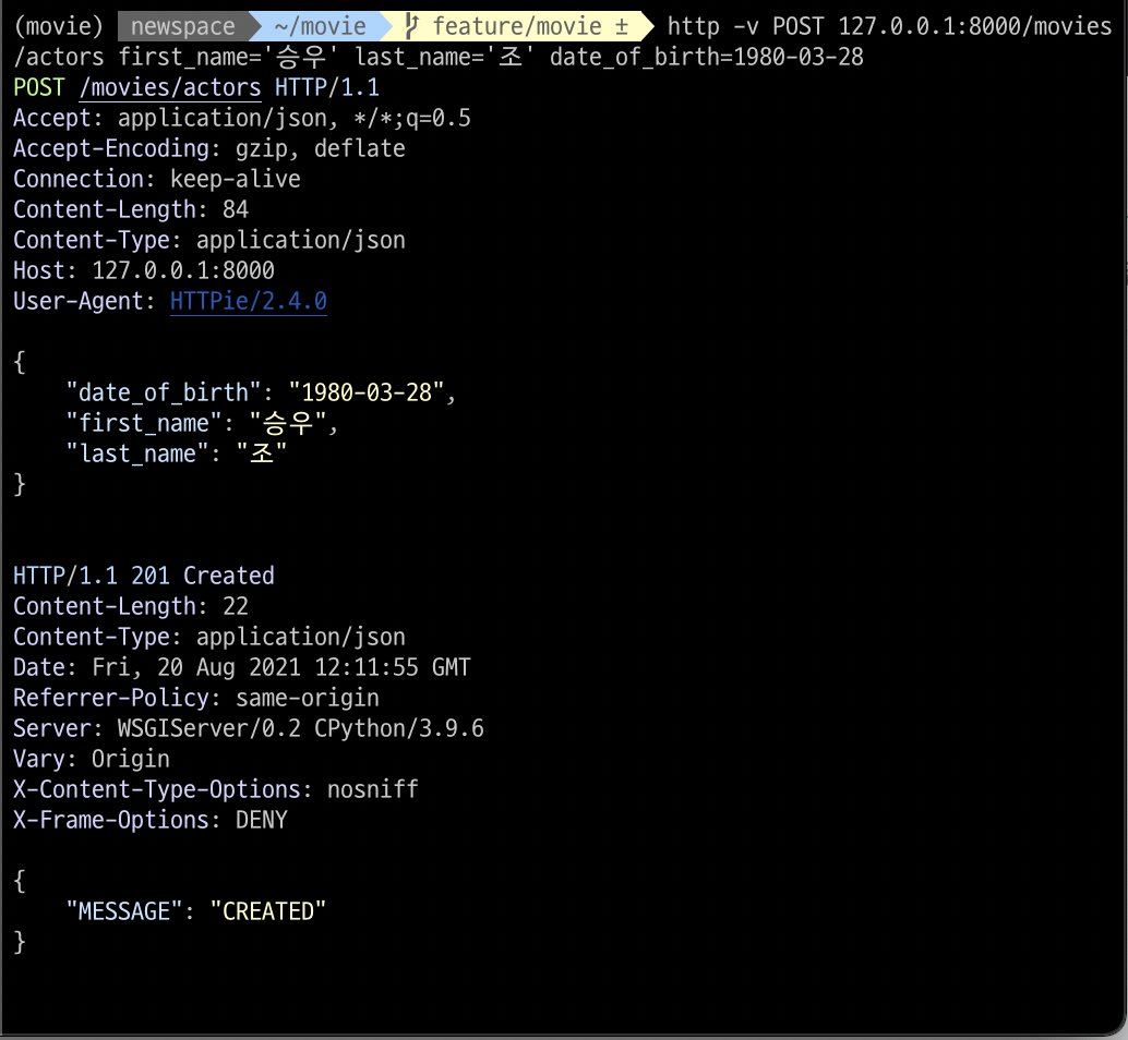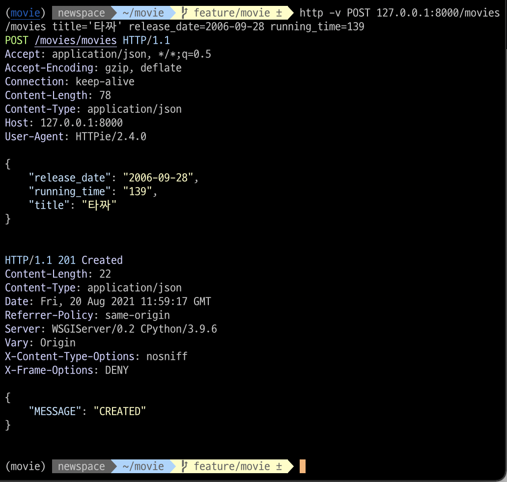 http -v POST 127.0.0.1:8000/movies/movies title='영화명' release_date=0000-00-00 running_time=000