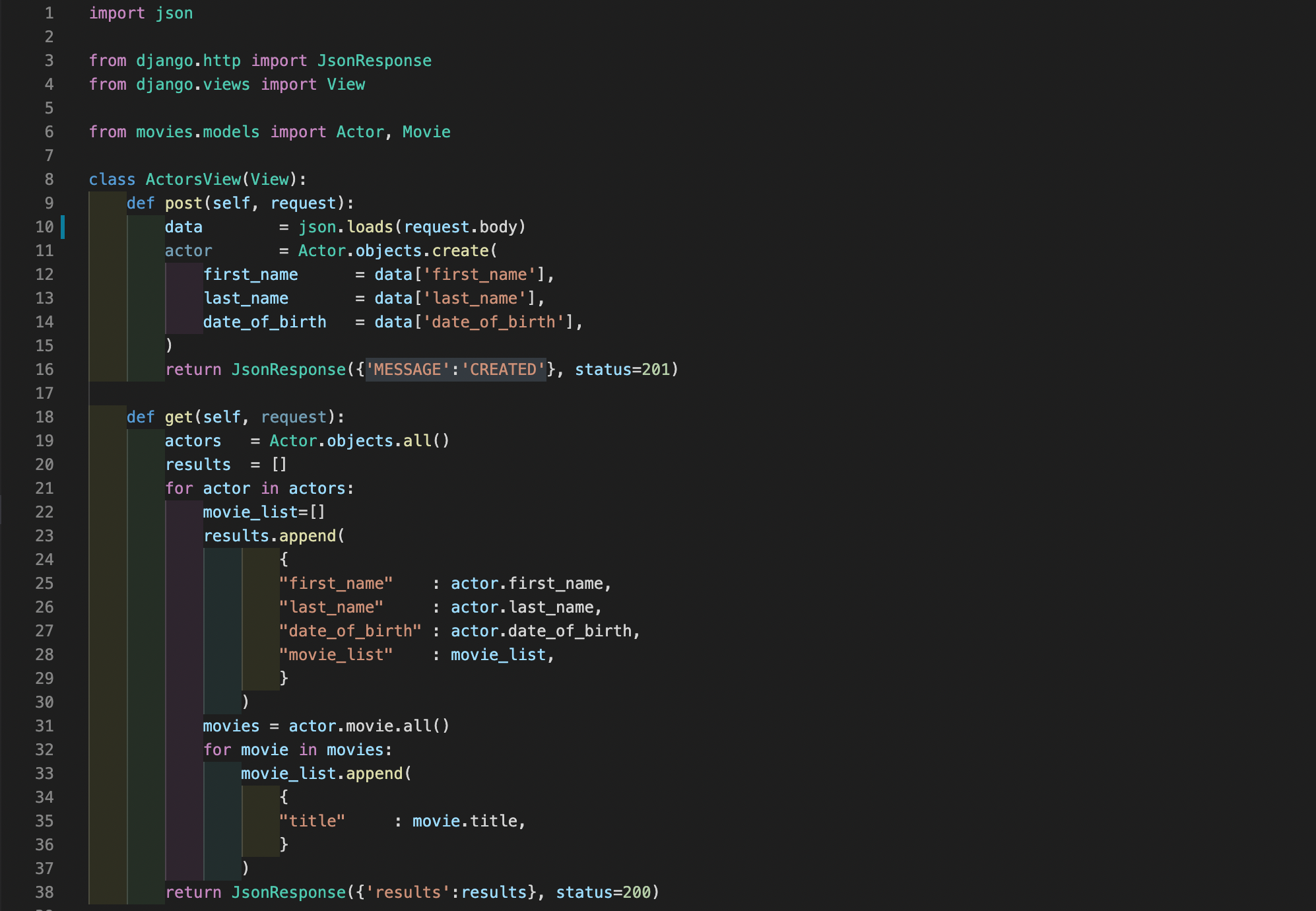 return JsonResponse({'MESSAGE':'CREATED'}, status=201)