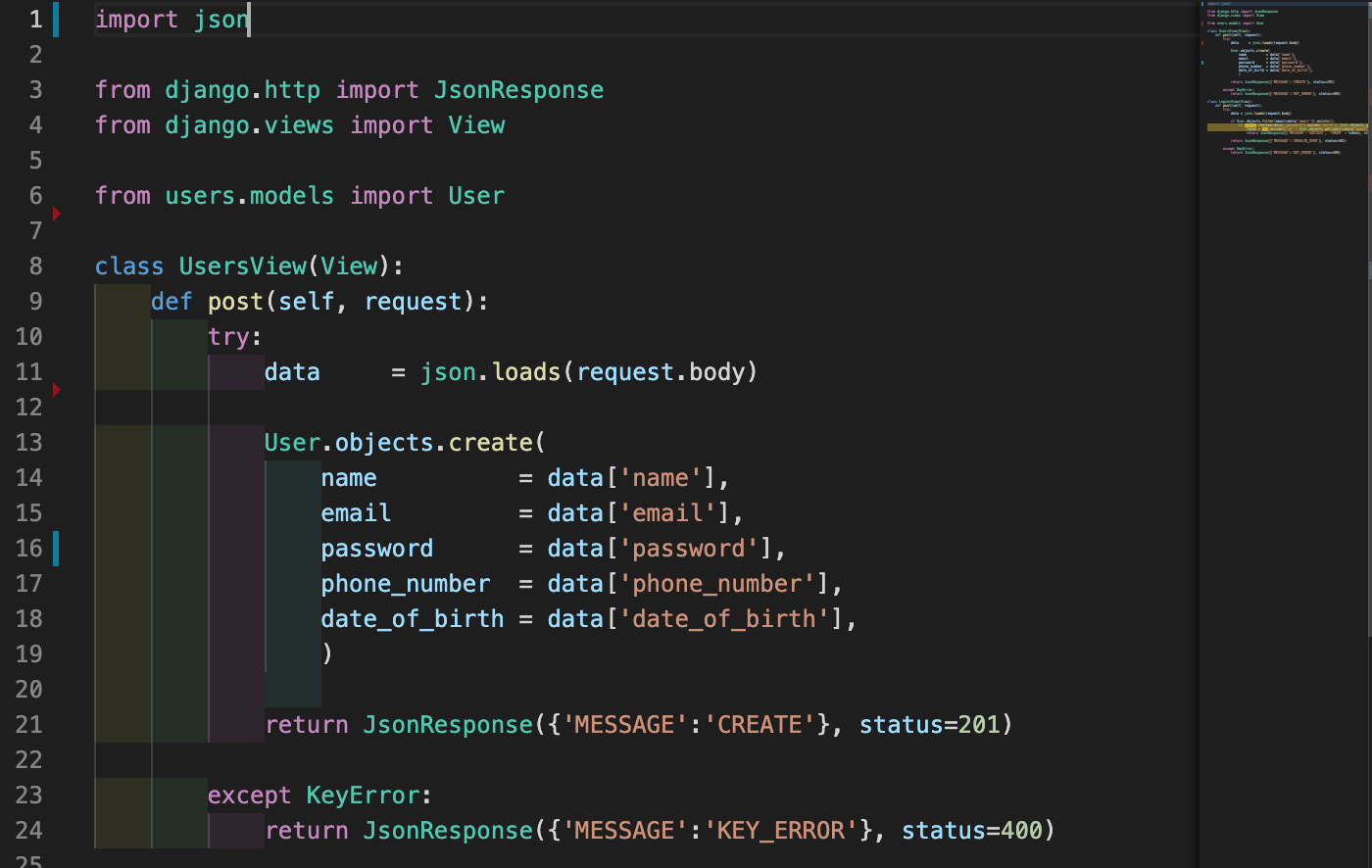 이렇게 하여 회원가입을 위한 조건식을 모두 만족한 views.py를 모두 만들어 주었습니다.