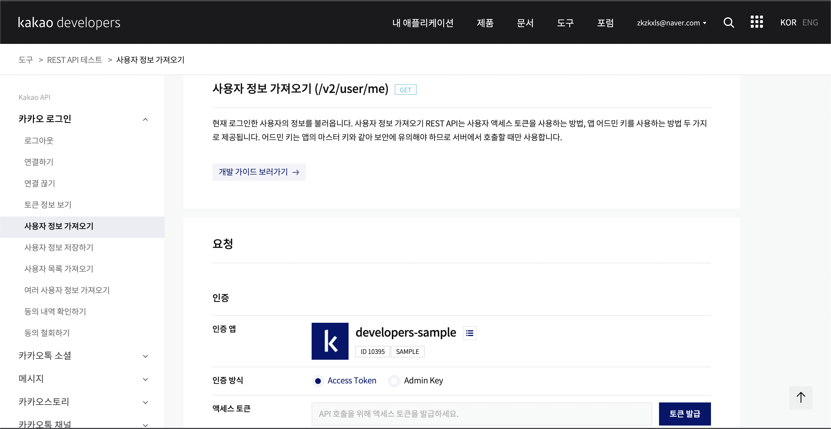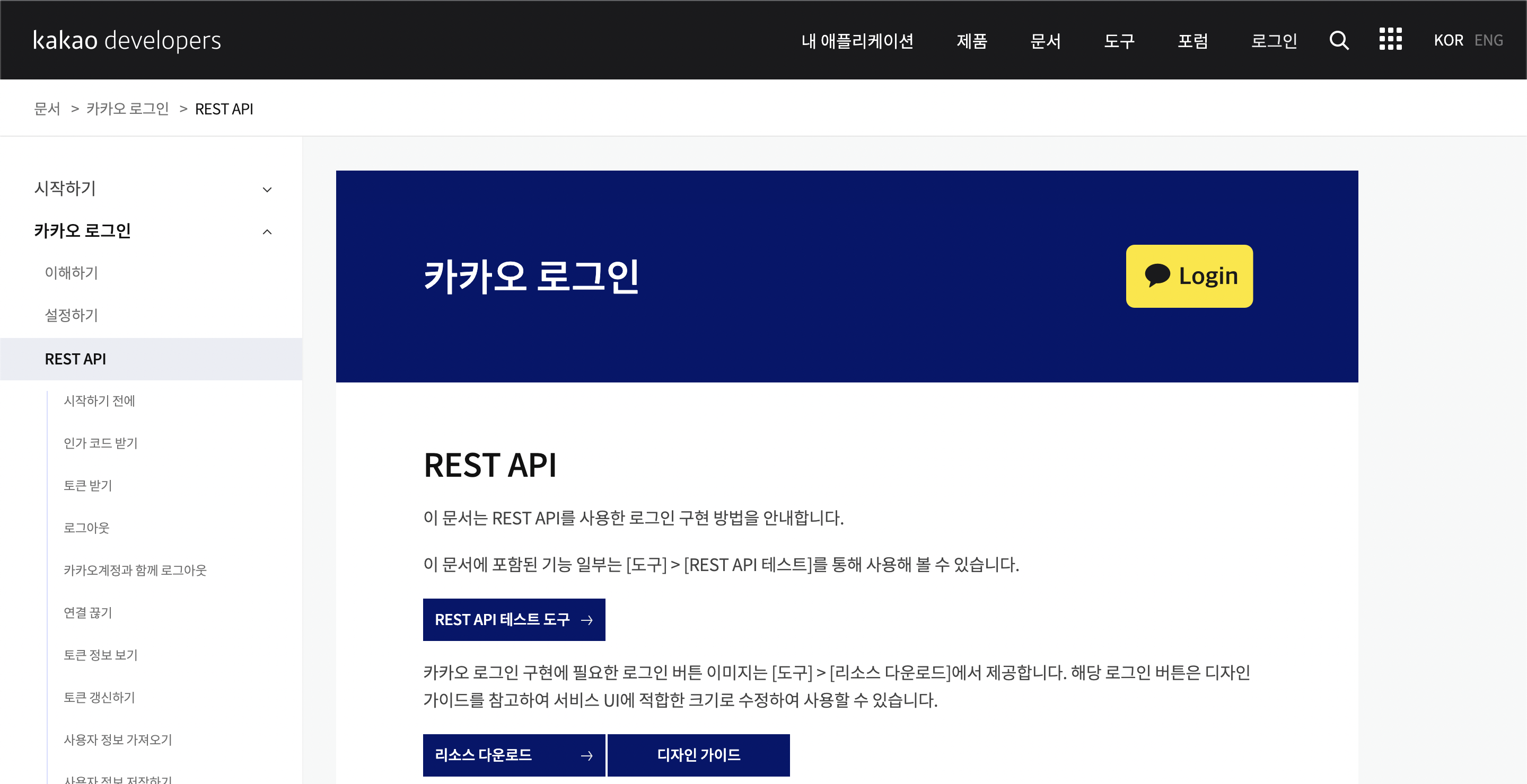 - Kakao Developers에 들어가서 REST API를 눌러보면 REST API 테스트 도구가 있다.