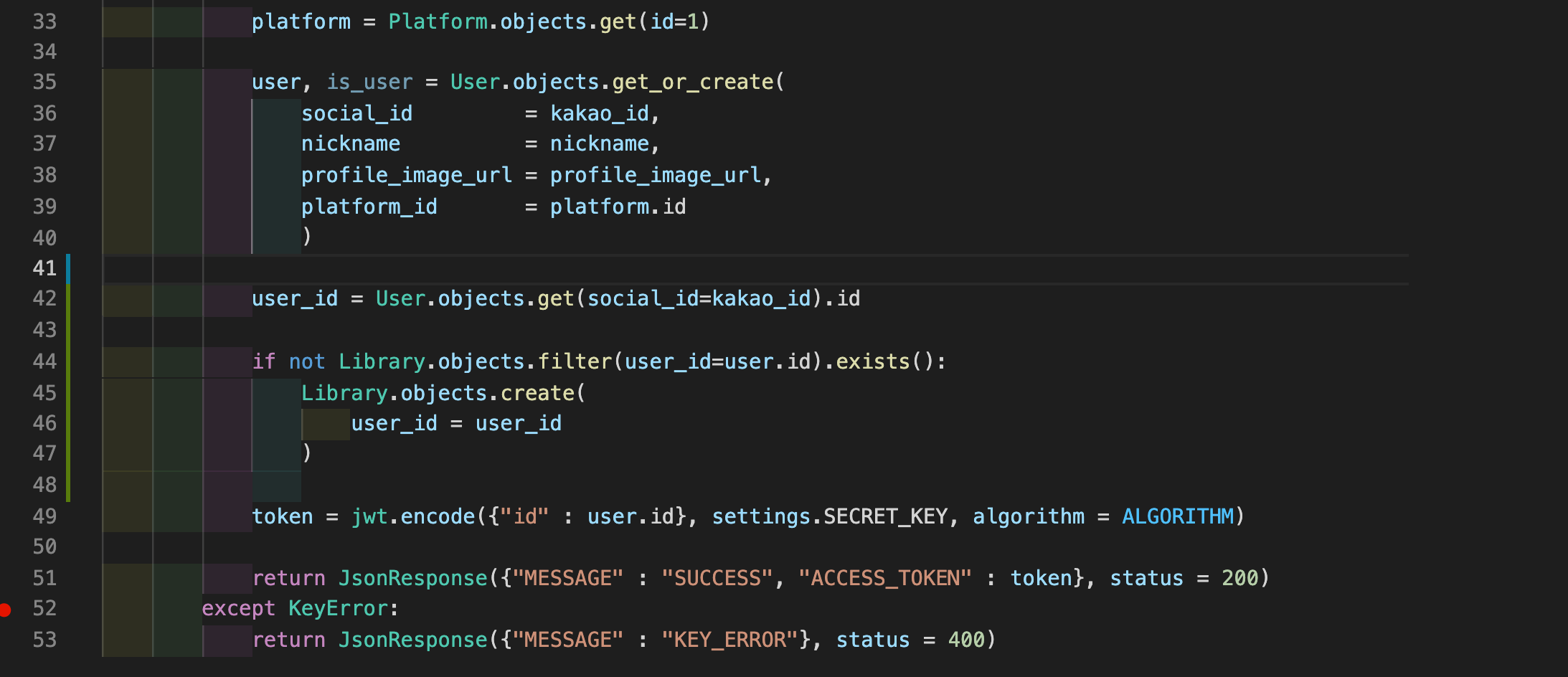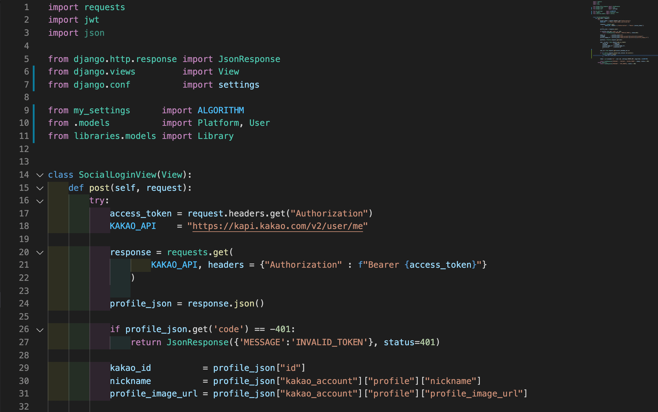 - urls.py를 만들어서 저는 sign-in/kakao라는 엔드포인트를 주었습니다.