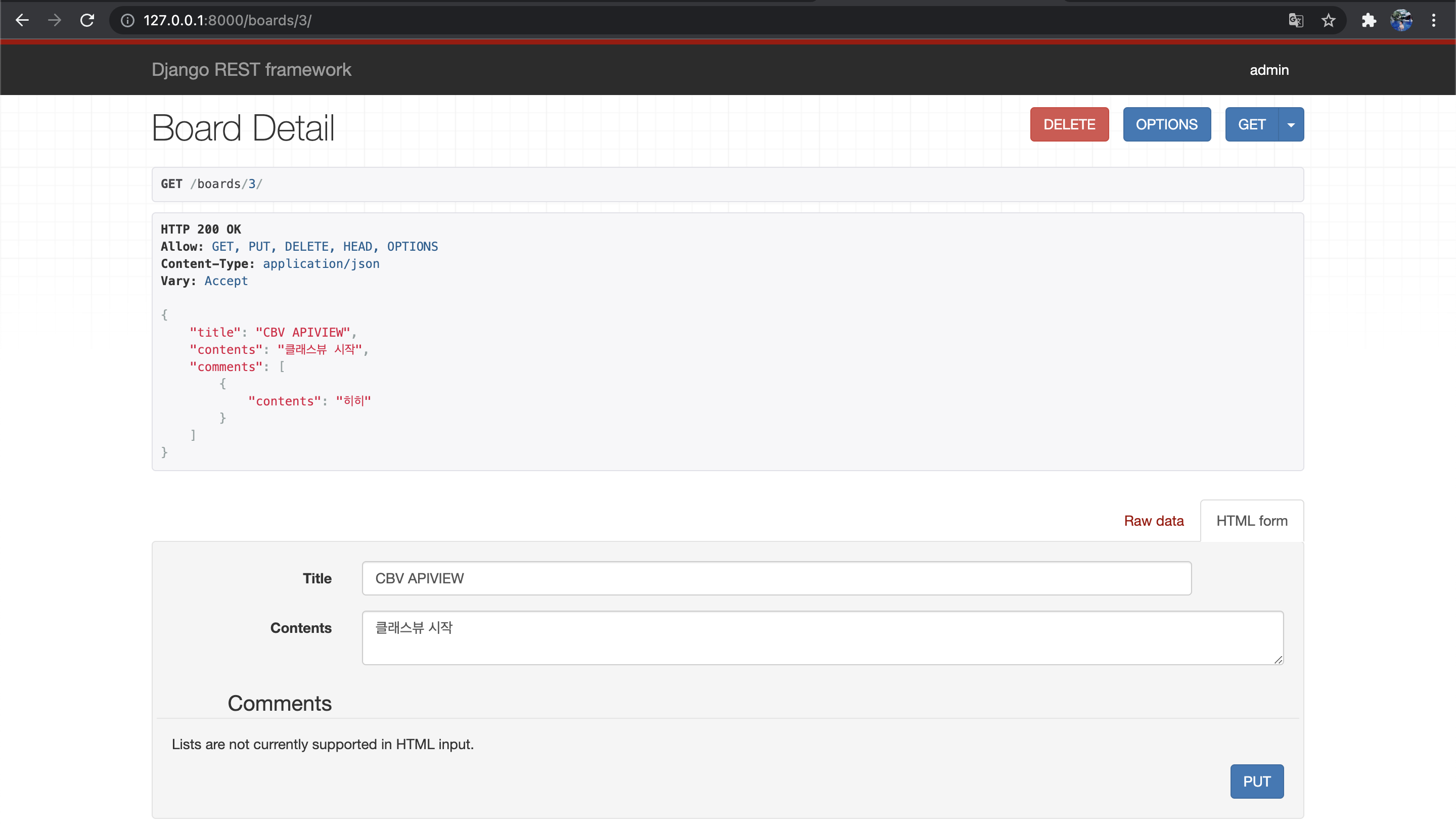 APIView로 작성했을 때 보다 훨씬 더 적은 코드를 치고 간결해진 것을 볼 수 있습니다.